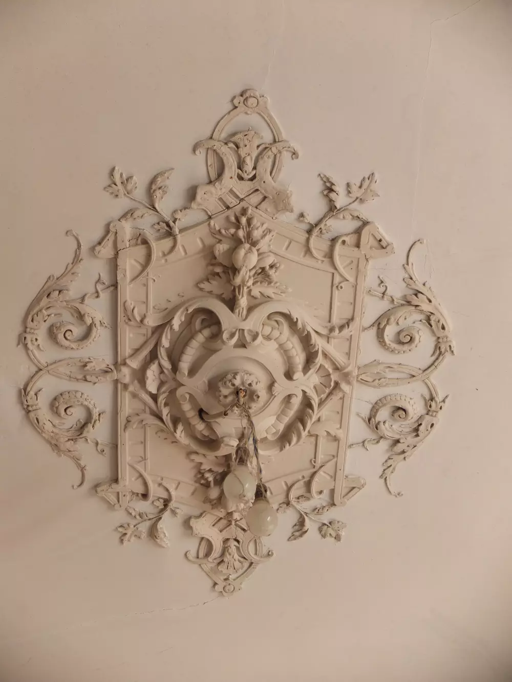 Filigree flowers and foliate designs bring nature and the changing seasons inside. In our soon to be kitchen there’s spring’s cornucopia – how befitting! In the sitting room next door you can soak up summer underneath roses in full bloom, and in the future library, intricate vines and acanthus leaves give you a taste of autumn and enduring life. Winter seems to be missing. Could it be hiding under the lowered ceiling in one of the smaller rooms? Truth be told, Lescure’s ceiling ornaments are a bit of a mish-mash, covering centuries of styles and techniques, from Renaissance to Rococo. Which brings me a whole new set of decorating problems. How on earth will I find suitable lamps? But once you’ve had a taste of eclecticism– passion, personality, whimsy and sparkle – it’s the most joyous challenge.