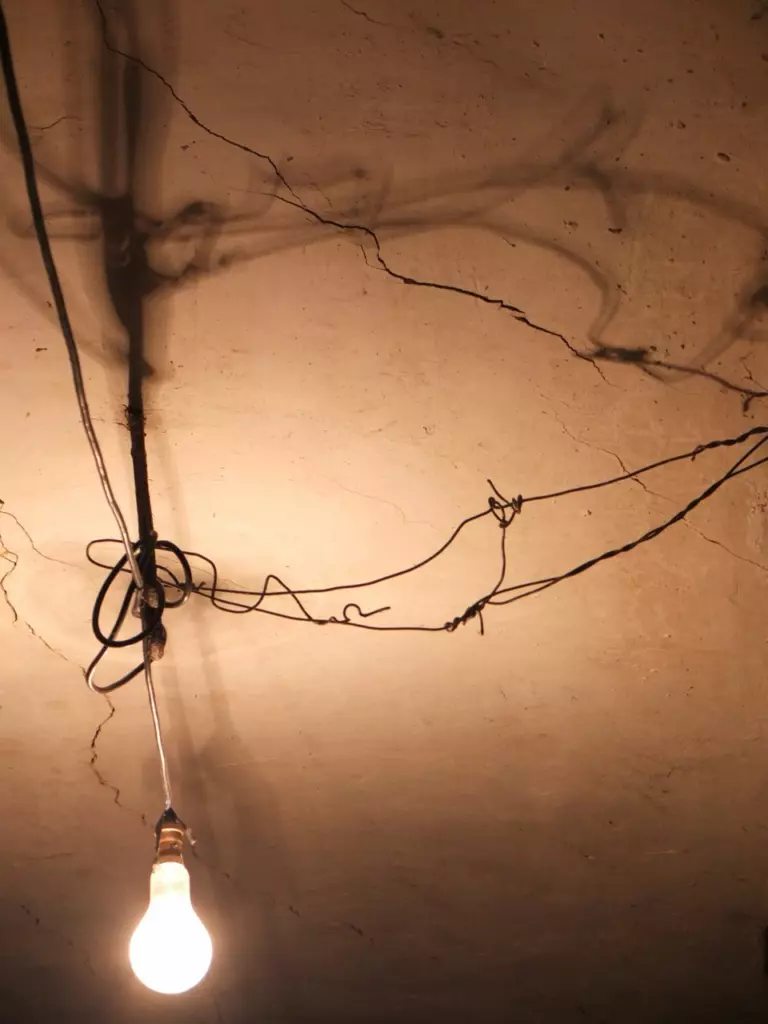 I decided to use our temporary lighting as a motive for some zen-like photography. Modest and calm in composition, the bulbs look vulnerable and add to the beauty of the castle’s decline. Against the water-stained walls and crumbling ceilings, they take on the qualities of wabi-sabi aesthetics: incompleteness and imperfection. The bayonet fittings and crooked wires seem to be sprouting from a mysterious surface, there to do nothing more than assume their place and radiate what is. From boring practicality came the unplanned beauty of humility and simplicity. It took a camera lens to make me see.