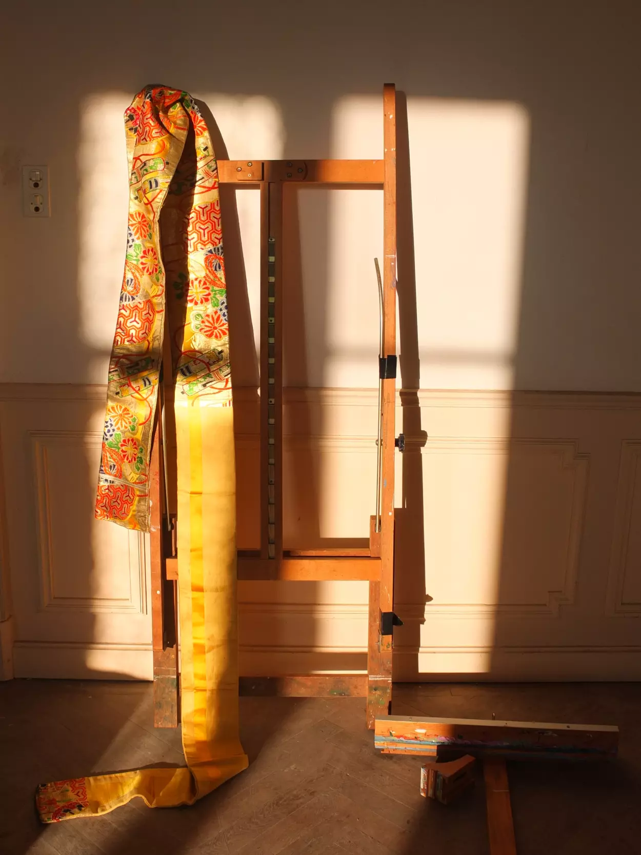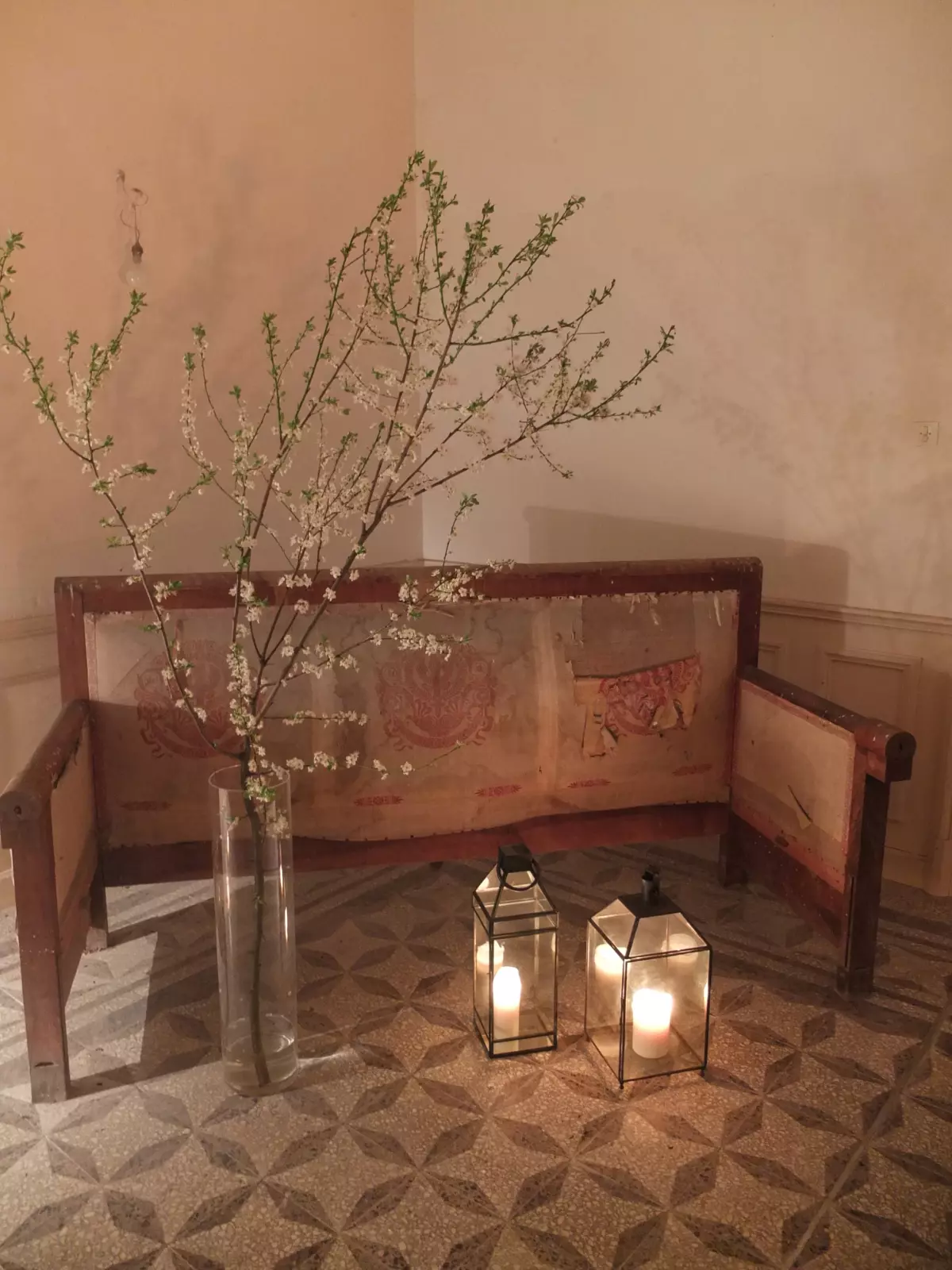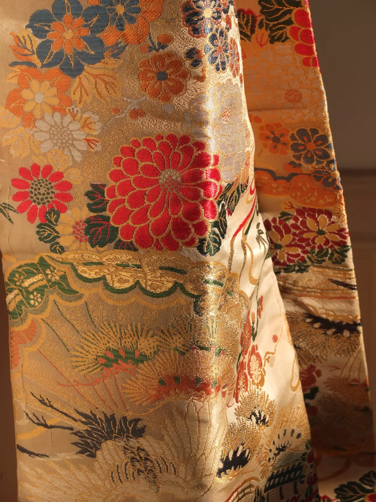 As a Dries van Noten devotee, my fashion heart goes out to arty-ethnic textiles, eclectic and decorative pieces. Transported by the romance of the castle and its surroundings, my style of dressing easily translates into interior design for Lescure. I’m sounding out ideas, thinking about elements, playing with fabrics. When I came across vintage obis (the wide brocade sash tied around a Japanese kimono) I was tempted to use these in the castle to dramatic effect. But how do I reconcile this with my exploration of the wabi-sabi aesthetic? Wabi-sabi honours the imperfect, the unfinished, and the ephemeral. A geisha’s kimonos and obis are anything but. They represent the opposite—perfection in vivacity. As always, the answer has come from the château itself, showering the obis with the most beautiful light against its muted walls.