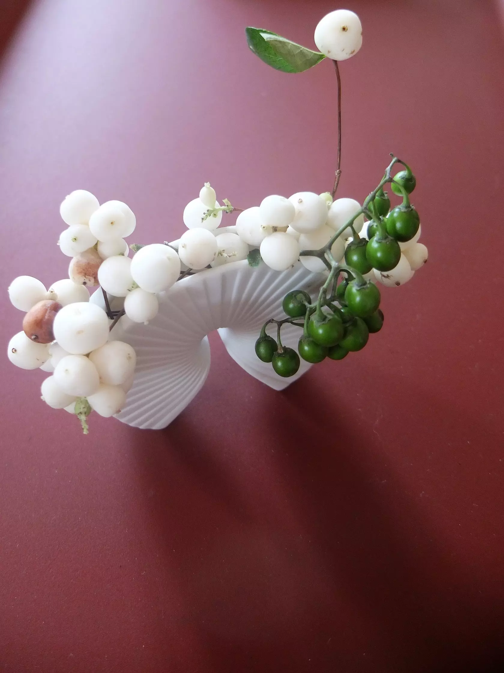 So, for the first time in years, I find myself experimenting with ikebana. Against a background of natural stone, marble and rust, I step into greys and reds. I play with textures and layers. I keep it small with delicate snowberries in a miniature vase. Unsurprisingly, I love it. Ikebana expands my appreciation of beauty and few things in life make me happier than finding beauty where I hadn’t seen it before.