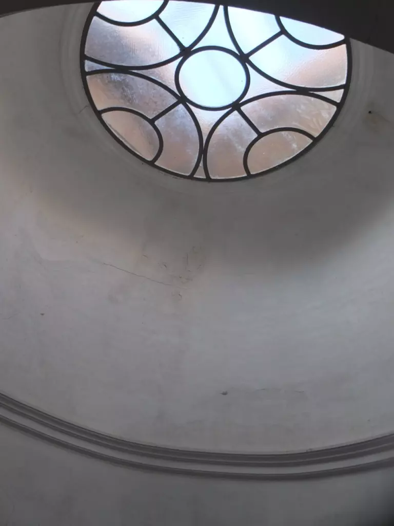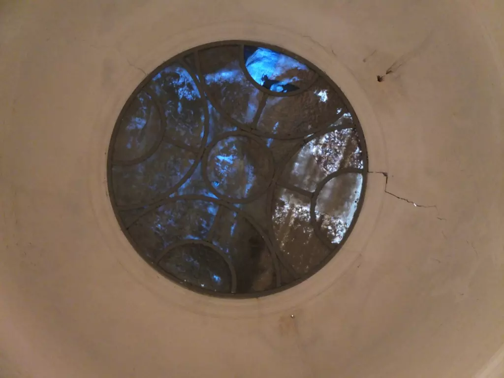 Imagine a large disembodied eye with a sinister droopy lid looming over you, watching your every move as you climb a stone staircase winding through dark shadows. The dome skylight above the castle’s central hall, which was designed to bring brightness into the house, used to make me shiver with its all- seeing presence. No more.