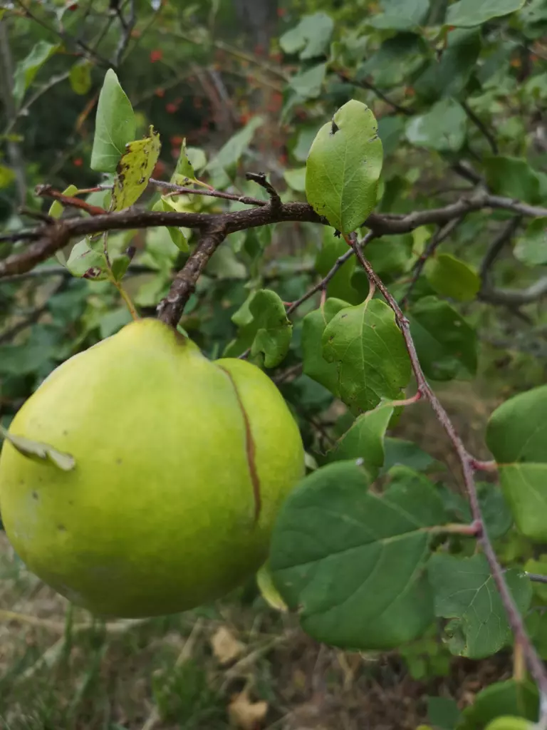 This year’s harvest has been very modest, making us appreciate the blessings of nature just a bit more. A highlight were the bright yellow fruits (six!) on the quince tree. We discovered the heavily neglected tree a couple of years ago and have been gently pruning it each winter. It has been offering us bowl-shaped pink flowers and fuzzy leaves, but no crop until last fall.