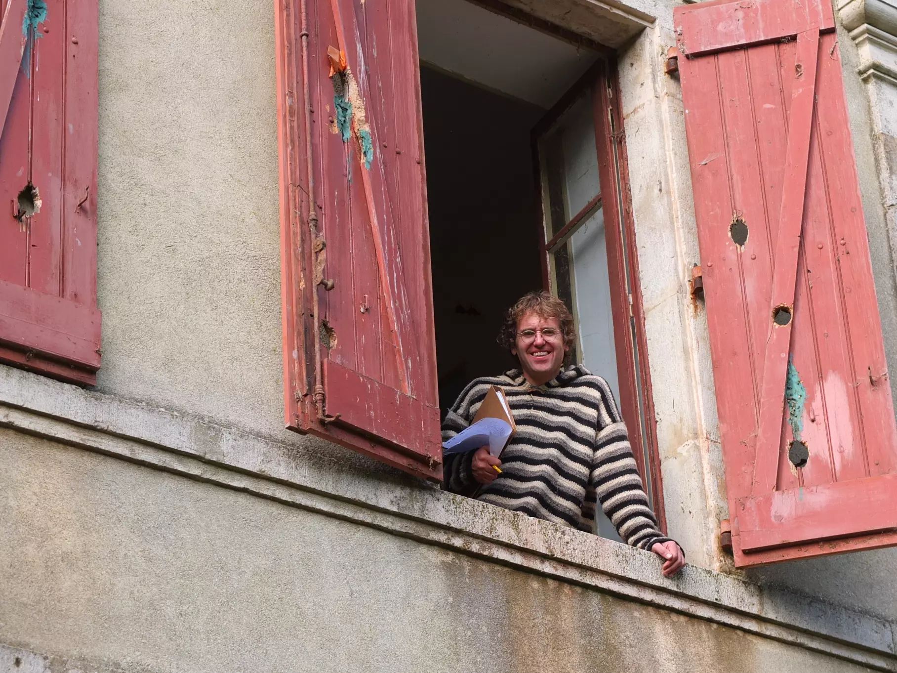 Thomas opening the blinds first thing in the  morning for natural light and fresh air. The house is just craving sun, energy and life. Be gone, ghosts of the past!