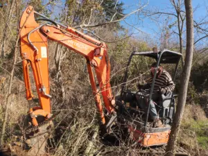Excavator In Orchard