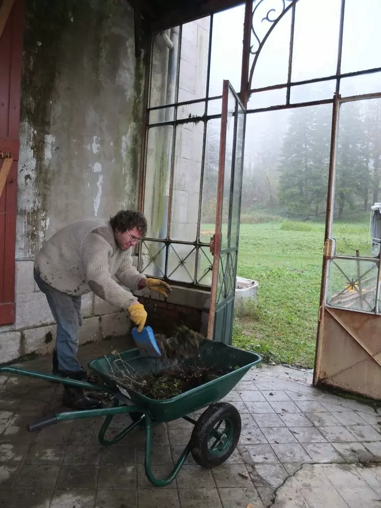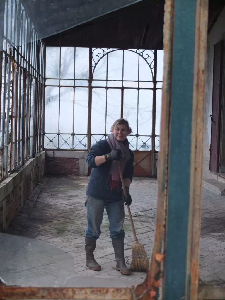 In the city I tend to find clouds grey and depressing, but here sprinkling rain and mist just cloak the estate in mystery. Looking for things to do on a misty day in December, we discovered that not only spring brings inspiration to clean from floor to ceiling. After years of neglect, the conservatory is in the worst state imaginable. As a first step in our project to restore and conserve this building we cleaned it like a pro. And because it’s important to keep dreaming of what the orangery will look like in the future, we celebrated this tiny milestone with the purchase of two grand gesture pots.