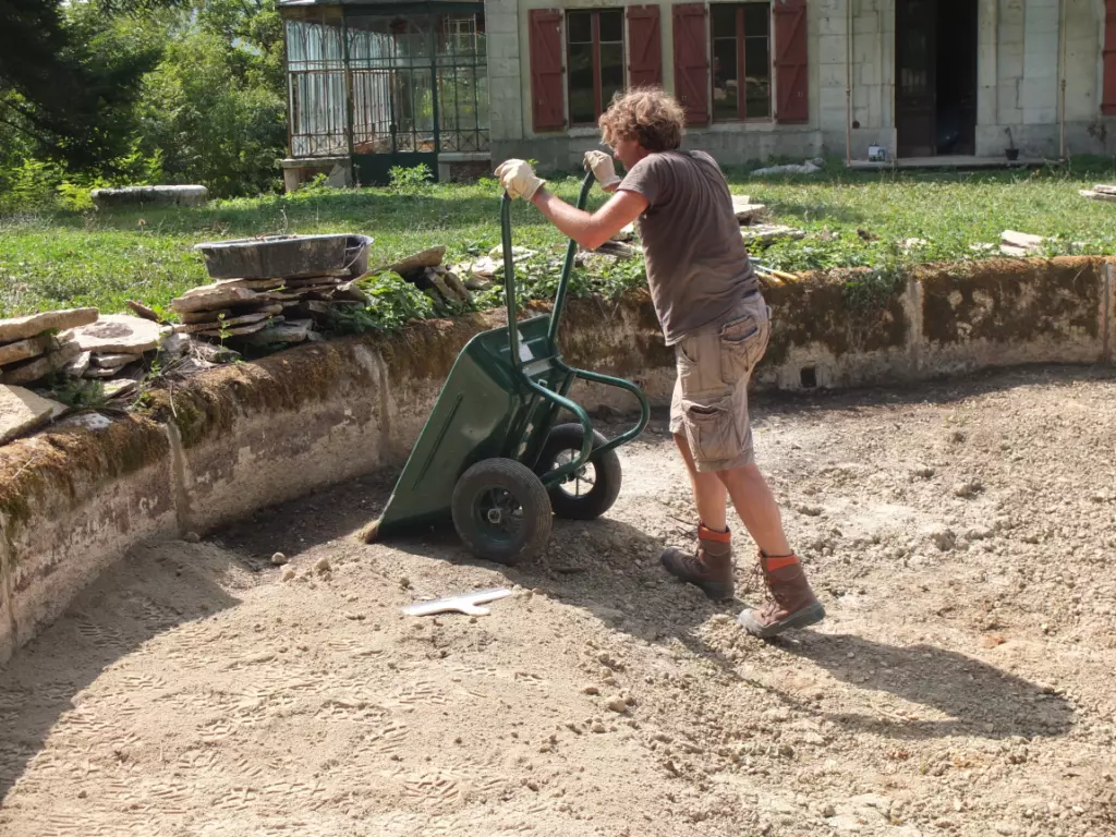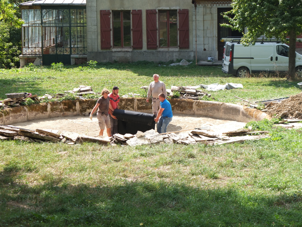 On the height of its glory, Lescure’s park must have been a real beauty, perfected – J.J. Rousseau style – to find peace and matter to think of. One of the folly remains is a large stone basin, right in the middle between the chapel and the château. From day one, Thomas made its restoration a priority and he dreamt out loud about water sprouting from a fountain again. Last spring, he got to work. It hasn’t been an easy ride.