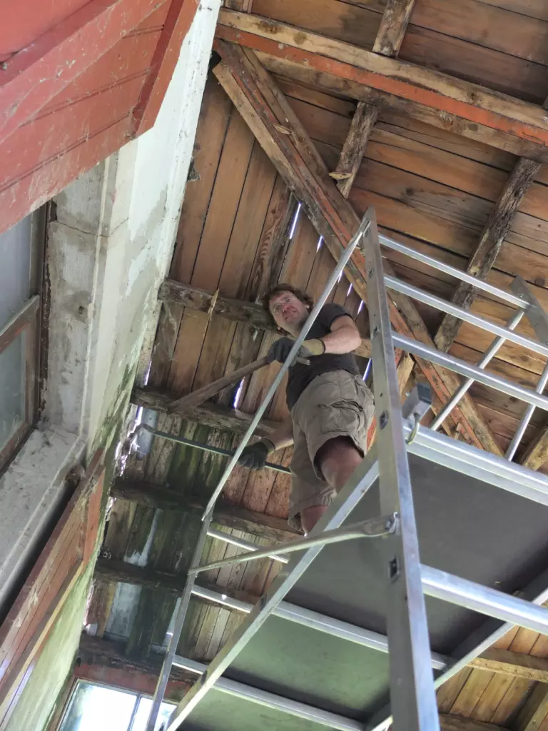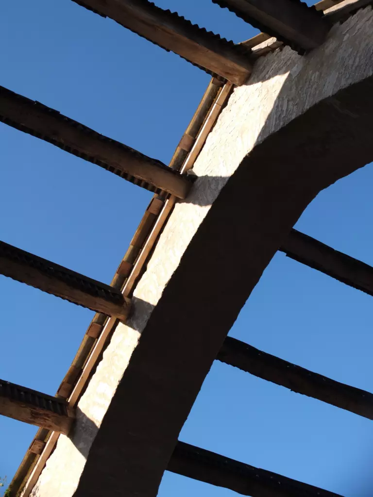 Most everything can inspire. To quote fashion designer Paul Smith: “You can find inspiration everywhere and if you can’t, look again”. My current obsession is scaffolding and I’m indulging in arty photos of it. I’m seeing skeletal sculptures and pattern everywhere – geometric shapes, spires and grids. There’s the pipes encrusting the old bridge at the entrance of our domain, where Jean-Philippe and his team are making sure the old stones won’t collapse under the weight of work trucks. There’s Thomas high up in the air, safeguarding old beams from further damage by rain leaking through the roof. And there’s the construction frames at our friends Yves-Olivier and Annie’s place. They’ve been working on medieval Château de Galinières for 33 (!) years. The scaffolding is a necessary condition for mundane work. We just need to be patient before it vanishes to reveal new beauty created by loving restoration. In the meantime, scaffolding impresses me in its own right.