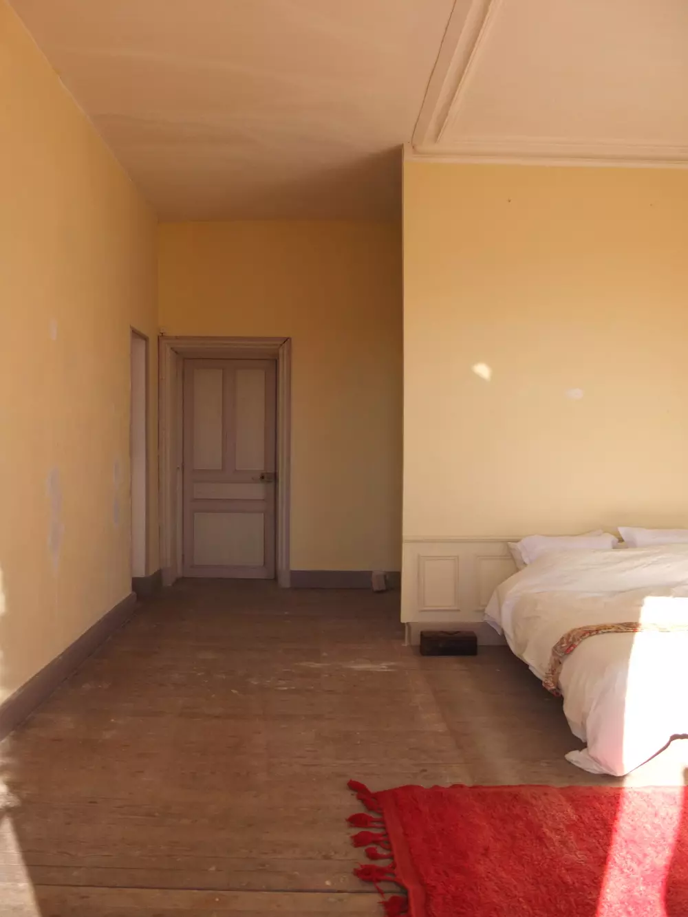 We chose two beautiful rooms on the first floor as our private quarters in the chambres d’hôtes. In preparing to attack these rooms – think emergency cleaning, getting rid of hundreds of dead flies and bees, remnants of nests, years of dust – I tried to look at this task as a way to get ideas on how to decorate. It also made me wonder about the wabi-sabi aesthetic. How do I walk the line between beautifully weathered and tattered and shabby? When do worn things and decayed walls take on their magic?