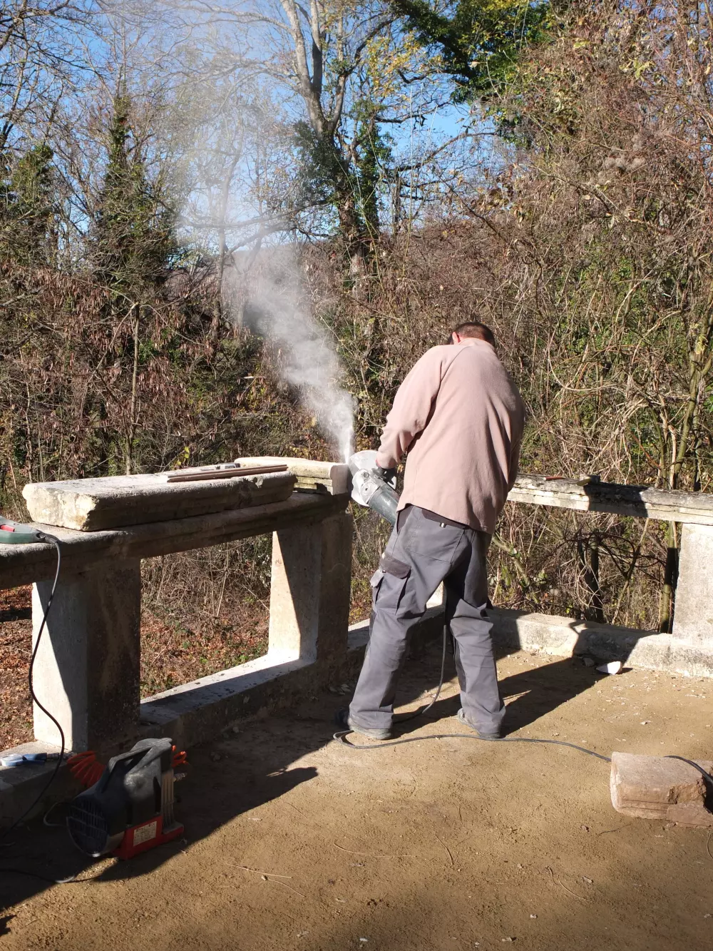 Re-doing the terrace has involved constant trial and error. As crackpot restorers of grand dreams and modest means we decided not to pave the platform with antique natural stone, but lay a carpet of coloured sand and lime instead. Inspired by Versailles, no less! We salvaged cracked stones and dismembered columns from the surrounding shrubs and reconstructed the rail of the balustrade. It’s been quite a puzzle and one we’ve been doing over and over again. Because the colour of the sand wasn’t quite right. Because Thomas and I got into heated discussions about what crooked beauty looks like. Because we got the measurements wrong. Again. And because no matter how long we searched, the woods refused to reveal the hiding place of one final stone. In short, the terrace project is far from complete and it can’t be rushed for fear of losing eccentric detail and originality. Thankfully the slow and steady pace of progress suits Lescure and seems appropriate for its gentle awakening.