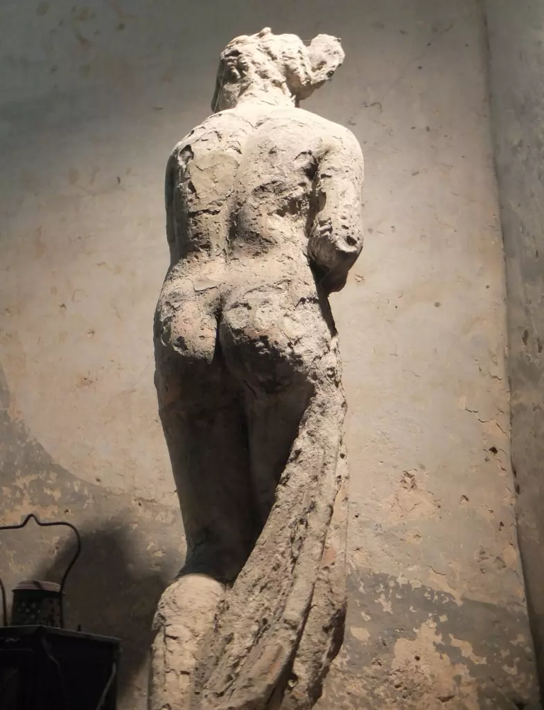 Quite the chore, but with plenty of uninterrupted time to dream and ponder. As Thomas was hauling and carting huge blocks of natural stone, my mind was on theatre. I love thinking like a set designer; it’s the simplest and quickest way to make a space look interesting. So today we have a beautiful old door covering up the eyesore of electrical conduits and a ravished Greek goddess rediscovering her body confidence in a dark nook. Her skin as dimpled and beautifully tarnished as the walls that hide her gaze.