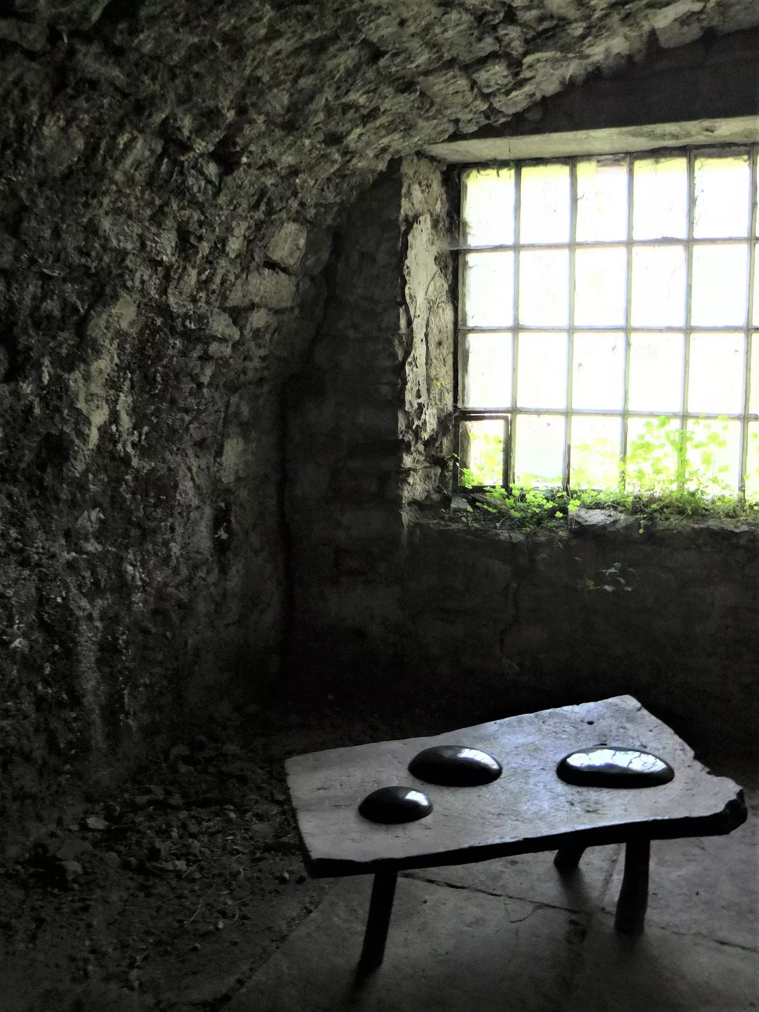 Best of all, we now have the smallest art gallery in Lescure’s underground world. Upon suggestion of a curator friend who imagined a dash of modern yellow in the rubble, I put a bright metal stool against the blueish green of water-damaged wall. Architects have come and gone, construction workers have come past, and still the terrace sheds a waterfall of tears into this part of the vault. Regina Verhagen’s ceramic tear shaped drops (a gift for Thomas from another artlover friend) bear witness to Lescure’s sorrow and our increasing anxiety about the unstoppable leakages. Art as solace. From now on, we’re finding calm through creativity and letting art lead our response to troubled renovation worries.